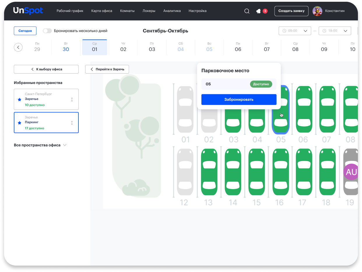 Это обеспечивает справедливое распределение парковки — никто не сможет «забронировать всё надолго вперёд», места остаются доступными для всех сотрудников.