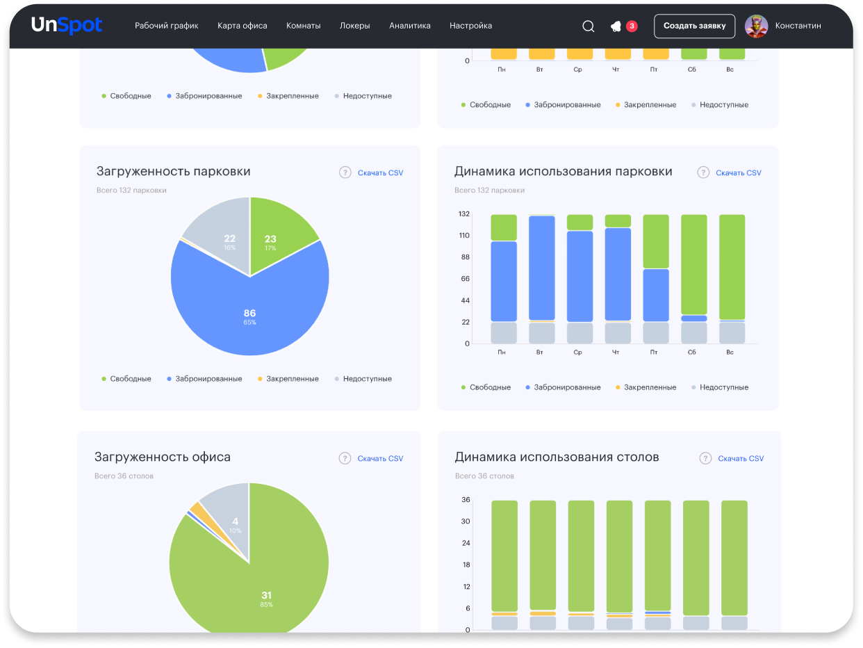 Поддерживает корпоративную политику гибридного формата работы — отделы получают гарантированные места в свои «дни присутствия» в офисе.