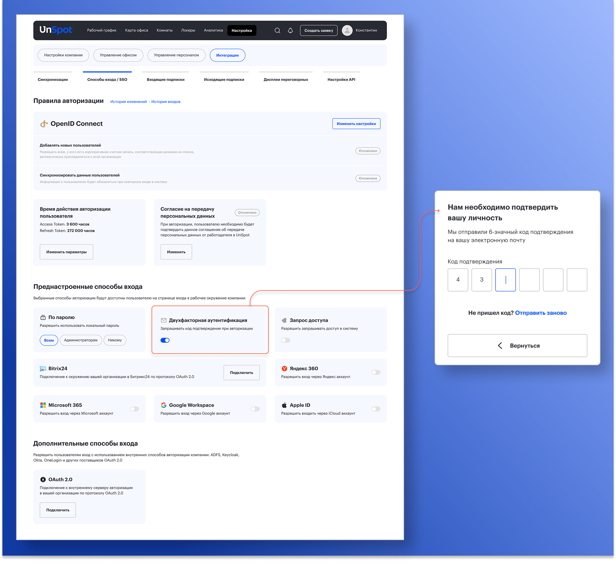 Это позволяет компаниям использовать UnSpot в связке с внутренними корпоративными системами и сохранять единый источник актуальных данных о сотрудниках, подразделениях и их статусах. В результате снижается нагрузка на администраторов, уменьшается риск расхождений в данных и упрощается сопровождение системы.